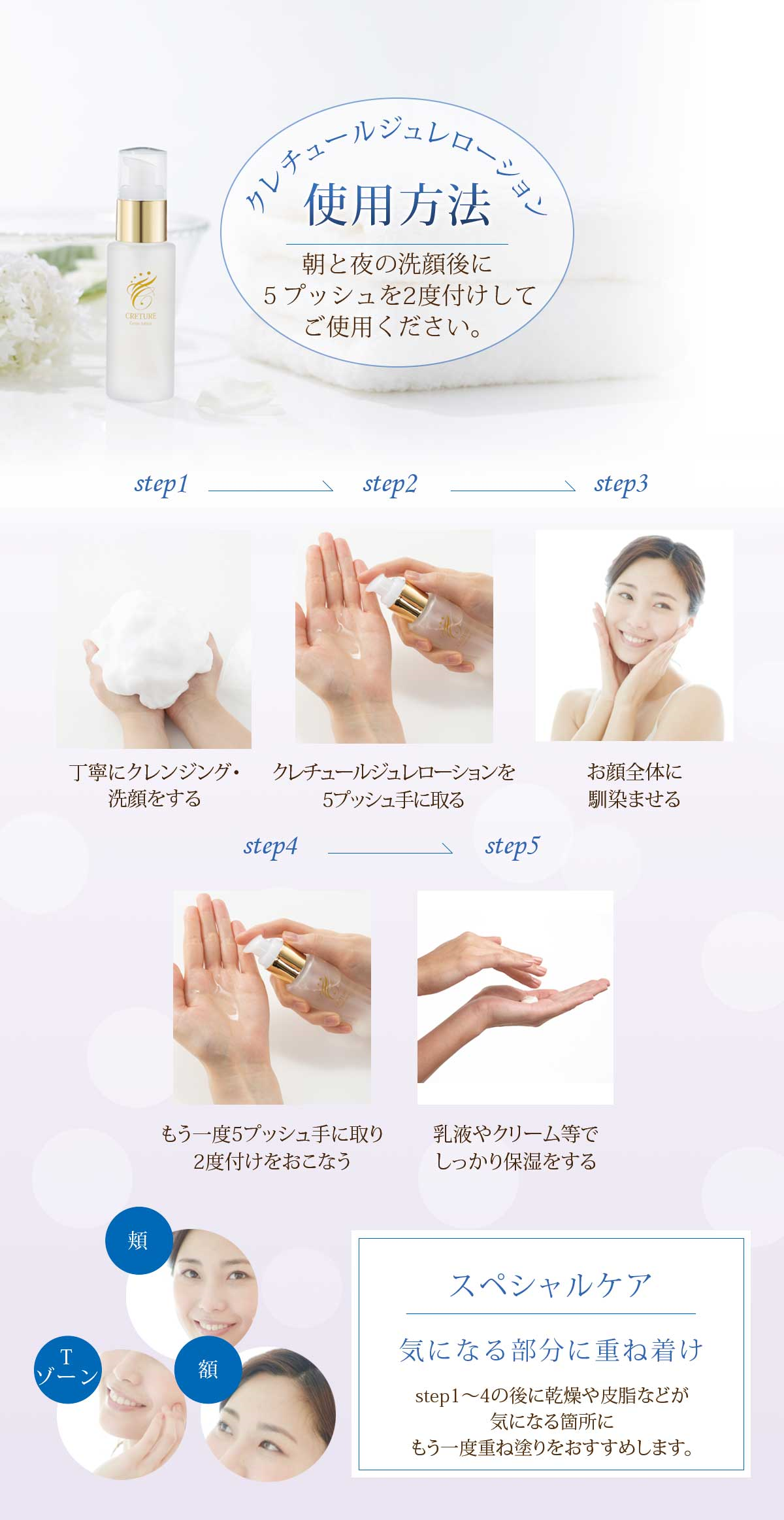 クレチュールジェルローションは、インナードライによる皮脂のベタツキ・肌の乾燥に肌の奥から